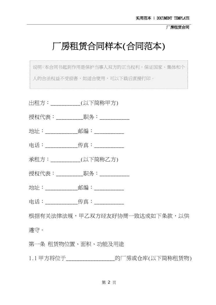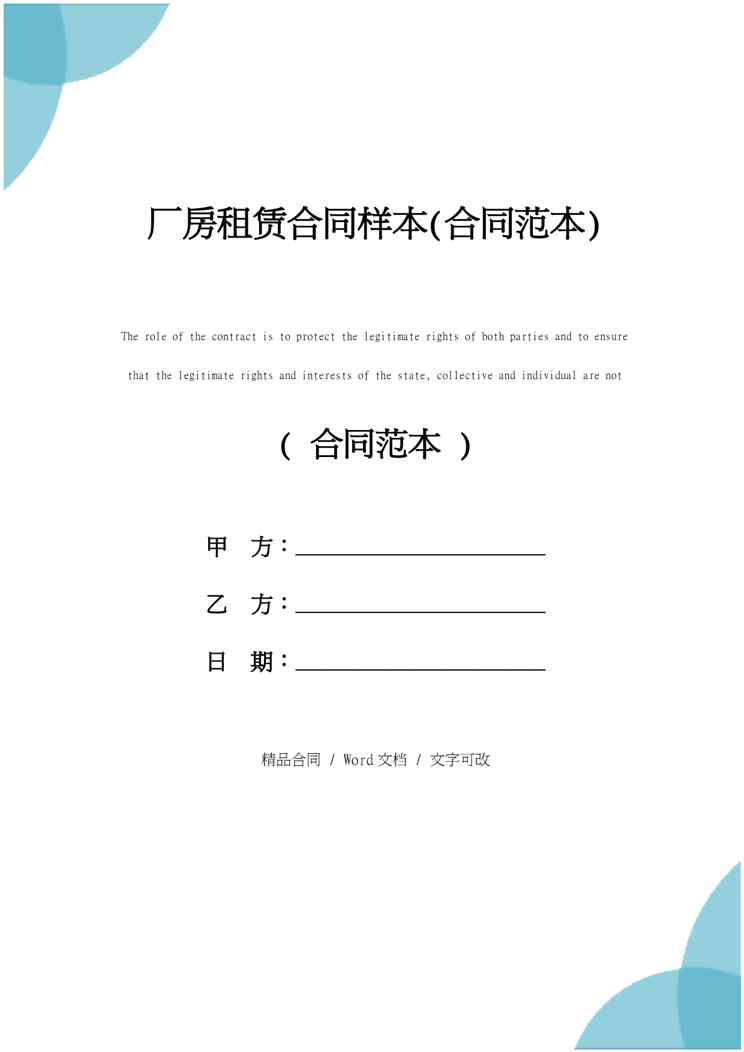 本站资深用户发布了最新的《2020新版厂房租赁合同样本》文档,以下内容为预览,详细内容可下载阅读。 声明:本站所有文章,如无特殊说明或标注,均为本站原创发布。任何个人或组织,在未征得本站同意时,禁止复制、盗用、采集、发布本站内容到任何网站、书籍等各类媒体平台。如若本站内容侵犯了原著者的合法权益,可联系我们进行处理。