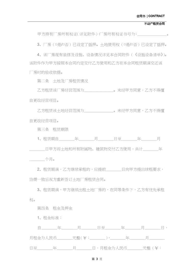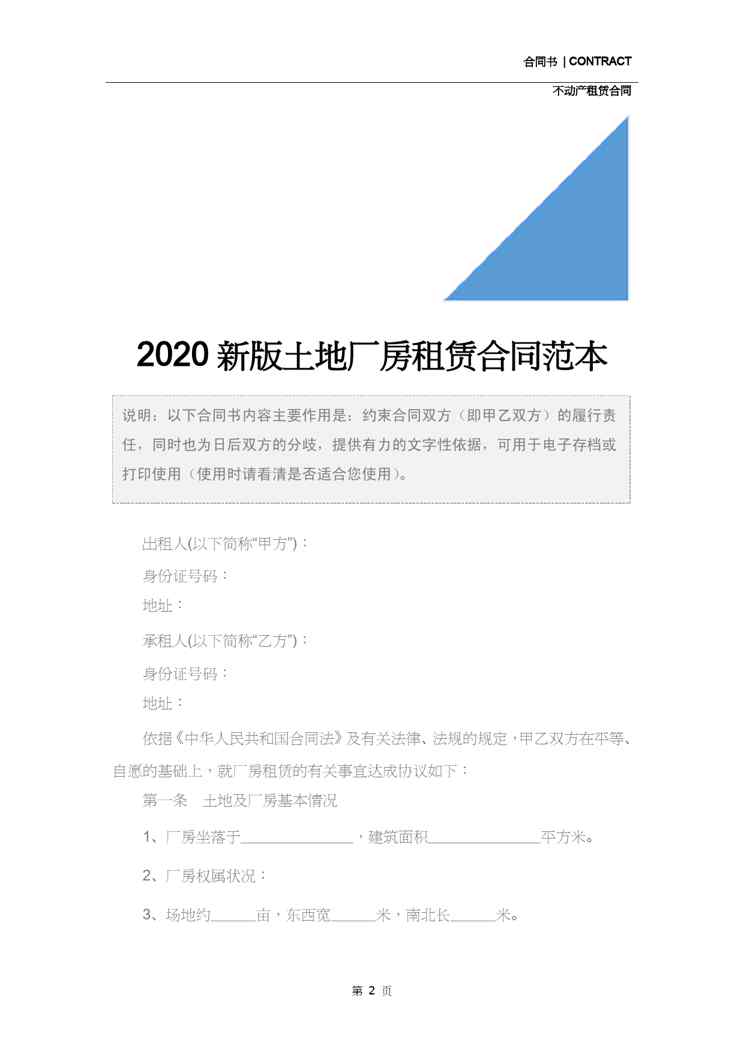 不久前,最新文档《2020新版土地厂房租赁合同范本》全文正式在本站发布,感兴趣的用户可以下载阅读。 声明:本站所有文章,如无特殊说明或标注,均为本站原创发布。任何个人或组织,在未征得本站同意时,禁止复制、盗用、采集、发布本站内容到任何网站、书籍等各类媒体平台。如若本站内容侵犯了原著者的合法权益,可联系我们进行处理。