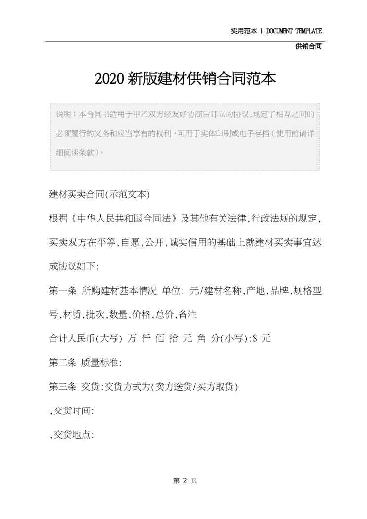 本站资深用户发布了最新的《2020新版建材供销合同范本》文档,以下内容为预览,详细内容可下载阅读。 声明:本站所有文章,如无特殊说明或标注,均为本站原创发布。任何个人或组织,在未征得本站同意时,禁止复制、盗用、采集、发布本站内容到任何网站、书籍等各类媒体平台。如若本站内容侵犯了原著者的合法权益,可联系我们进行处理。