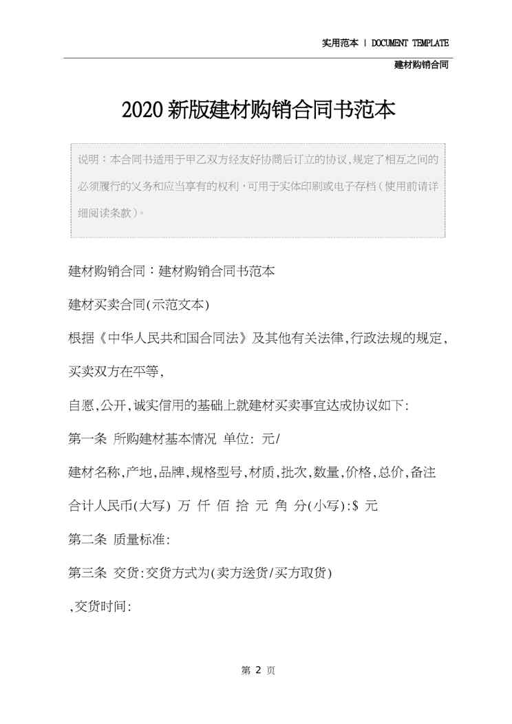 本站资深用户发布了最新的《2020新版建材购销合同书范本》文档,以下内容为预览,详细内容可下载阅读。 声明:本站所有文章,如无特殊说明或标注,均为本站原创发布。任何个人或组织,在未征得本站同意时,禁止复制、盗用、采集、发布本站内容到任何网站、书籍等各类媒体平台。如若本站内容侵犯了原著者的合法权益,可联系我们进行处理。