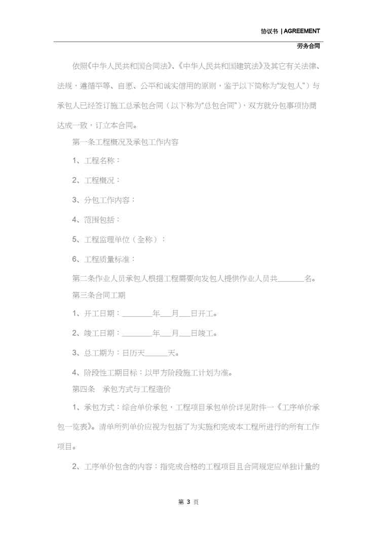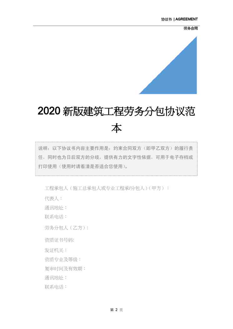 不久前,最新文档《2020新版建筑工程劳务分包协议范本》全文正式在本站发布,感兴趣的用户可以下载阅读。 声明:本站所有文章,如无特殊说明或标注,均为本站原创发布。任何个人或组织,在未征得本站同意时,禁止复制、盗用、采集、发布本站内容到任何网站、书籍等各类媒体平台。如若本站内容侵犯了原著者的合法权益,可联系我们进行处理。