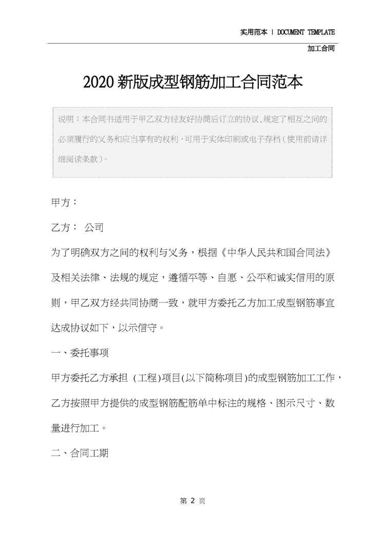 本站资深用户发布了最新的《2020新版成型钢筋加工合同范本》文档,以下内容为预览,详细内容可下载阅读。