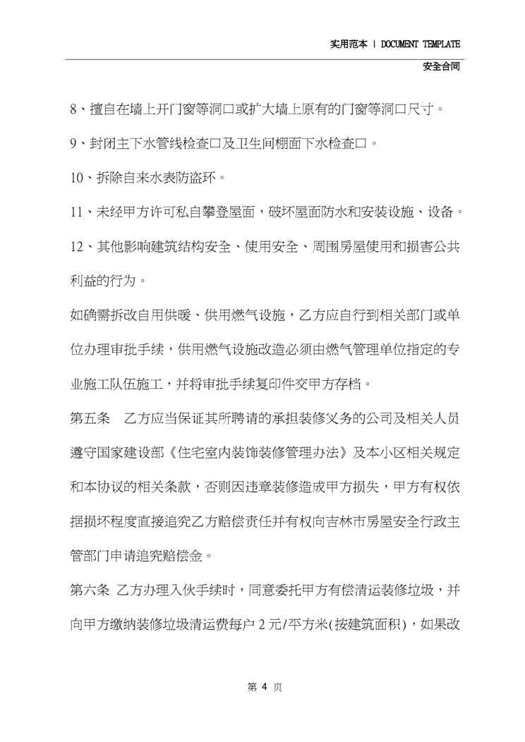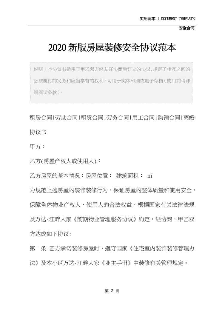 不久前,最新文档《2020新版房屋装修安全协议范本》全文正式在本站发布,感兴趣的用户可以下载阅读。 声明:本站所有文章,如无特殊说明或标注,均为本站原创发布。任何个人或组织,在未征得本站同意时,禁止复制、盗用、采集、发布本站内容到任何网站、书籍等各类媒体平台。如若本站内容侵犯了原著者的合法权益,可联系我们进行处理。