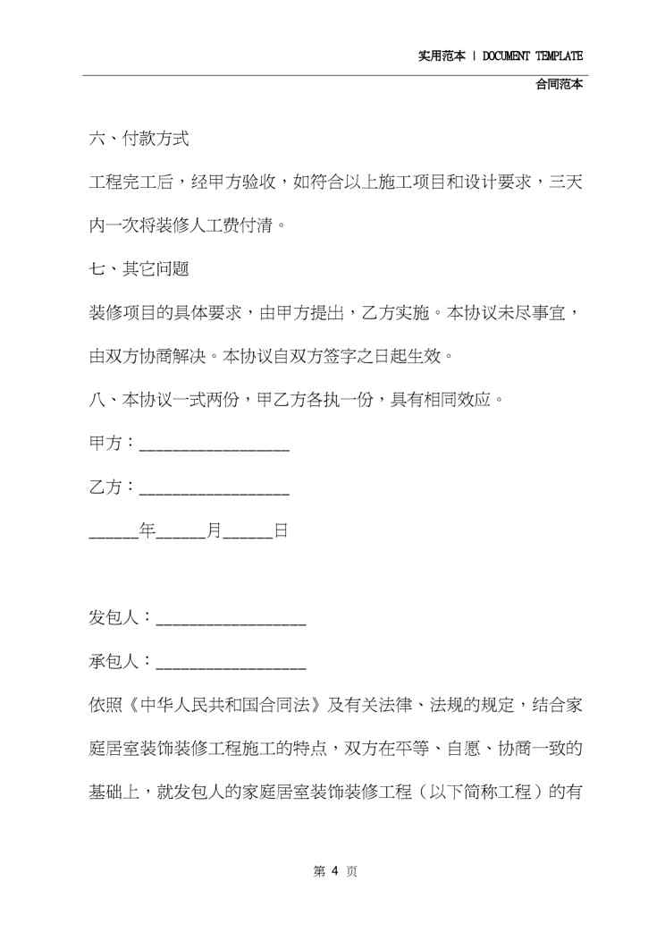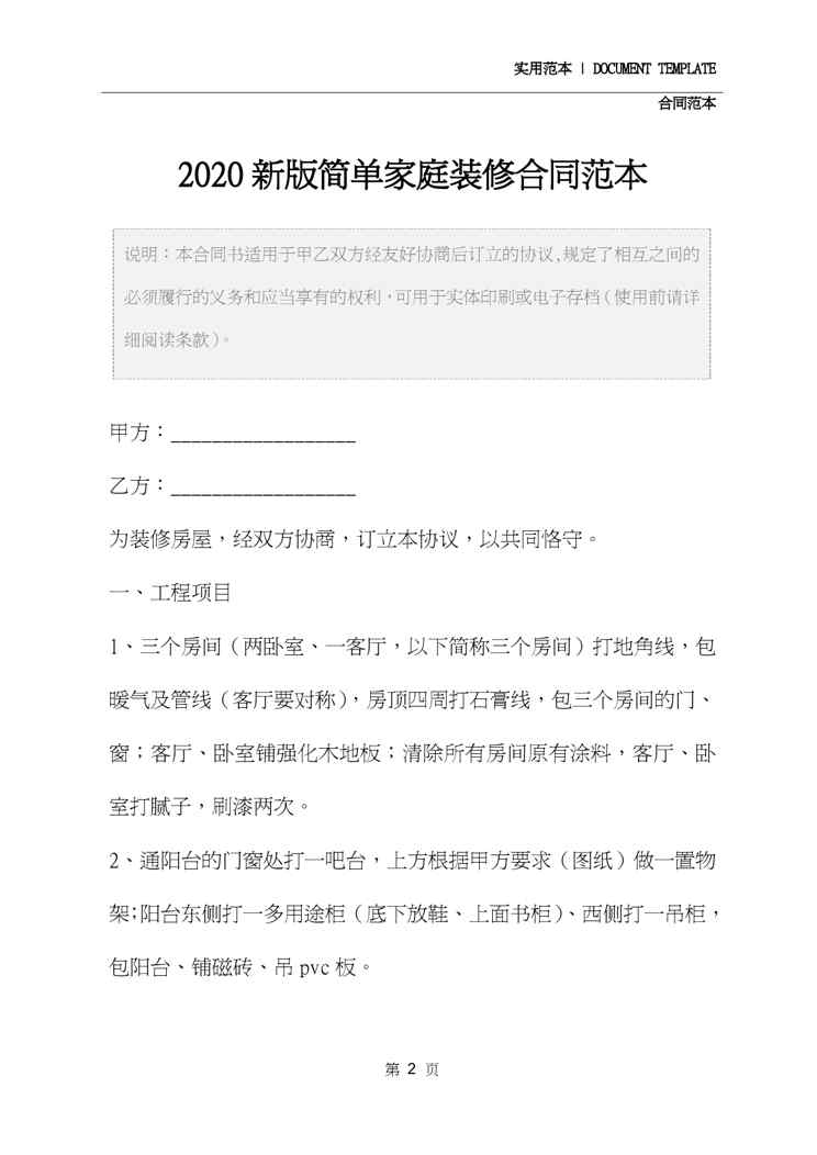 不久前,最新文档《2020新版简单家庭装修合同范本》全文正式在本站发布,感兴趣的用户可以下载阅读。 声明:本站所有文章,如无特殊说明或标注,均为本站原创发布。任何个人或组织,在未征得本站同意时,禁止复制、盗用、采集、发布本站内容到任何网站、书籍等各类媒体平台。如若本站内容侵犯了原著者的合法权益,可联系我们进行处理。