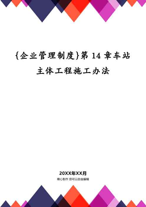 本站正式发布了《{企业管理制度}第14章车站主体工程施工办法》文档,文档详细内容可下载阅读。 声明:本站所有文章,如无特殊说明或标注,均为本站原创发布。任何个人或组织,在未征得本站同意时,禁止复制、盗用、采集、发布本站内容到任何网站、书籍等各类媒体平台。如若本站内容侵犯了原著者的合法权益,可联系我们进行处理。