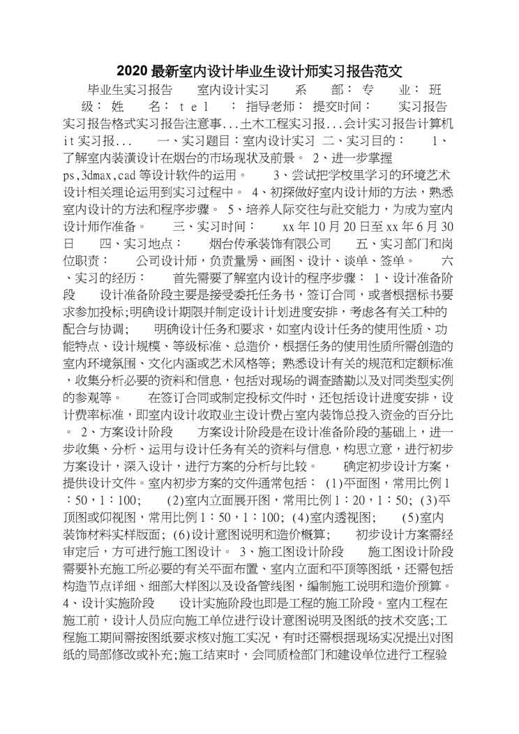 本站正式发布了《2020最新室内设计毕业生设计师实习报告范文》文档,文档详细内容可下载阅读。 声明:本站所有文章,如无特殊说明或标注,均为本站原创发布。任何个人或组织,在未征得本站同意时,禁止复制、盗用、采集、发布本站内容到任何网站、书籍等各类媒体平台。如若本站内容侵犯了原著者的合法权益,可联系我们进行处理。