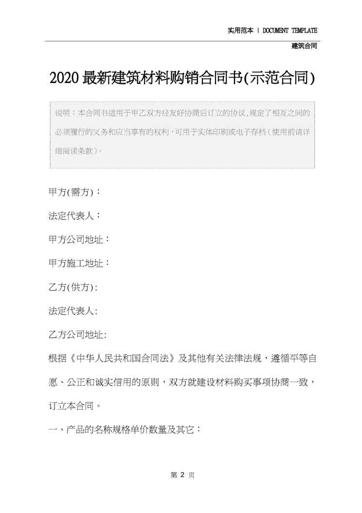 本站正式发布了《2020最新建筑材料购销合同书(示范合同)》文档,文档详细内容可下载阅读。 声明:本站所有文章,如无特殊说明或标注,均为本站原创发布。任何个人或组织,在未征得本站同意时,禁止复制、盗用、采集、发布本站内容到任何网站、书籍等各类媒体平台。如若本站内容侵犯了原著者的合法权益,可联系我们进行处理。