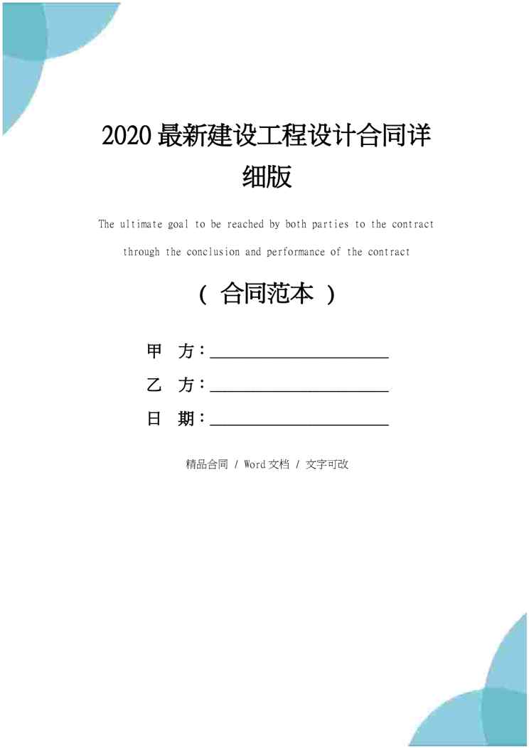 不久前,最新文档《2020最新建设工程设计合同详细版》全文正式在本站发布,感兴趣的用户可以下载阅读。 声明:本站所有文章,如无特殊说明或标注,均为本站原创发布。任何个人或组织,在未征得本站同意时,禁止复制、盗用、采集、发布本站内容到任何网站、书籍等各类媒体平台。如若本站内容侵犯了原著者的合法权益,可联系我们进行处理。