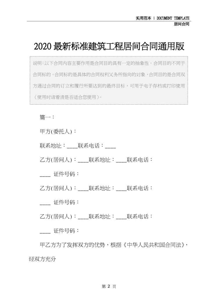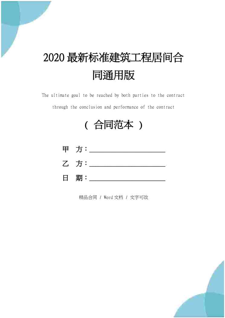 本站正式发布了《2020最新标准建筑工程居间合同通用版》文档,文档详细内容可下载阅读。 声明:本站所有文章,如无特殊说明或标注,均为本站原创发布。任何个人或组织,在未征得本站同意时,禁止复制、盗用、采集、发布本站内容到任何网站、书籍等各类媒体平台。如若本站内容侵犯了原著者的合法权益,可联系我们进行处理。
