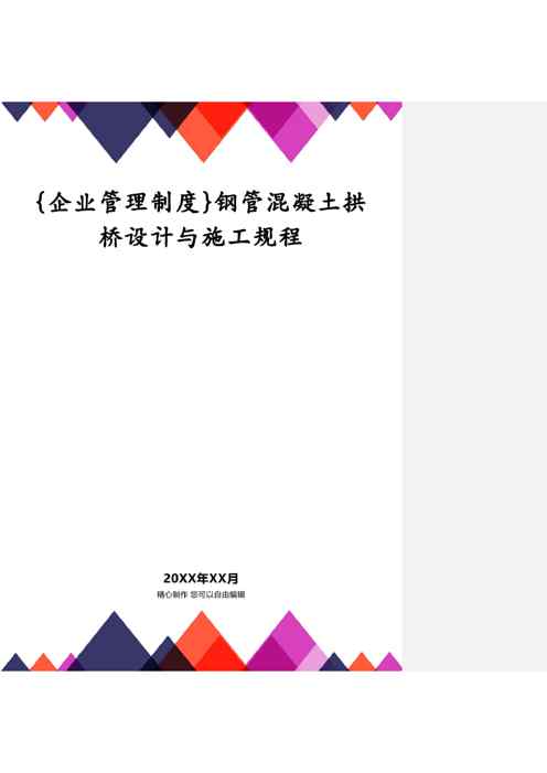 不久前,最新文档《{企业管理制度}钢管混凝土拱桥设计与施工规程》全文正式在本站发布,感兴趣的用户可以下载阅读。 声明:本站所有文章,如无特殊说明或标注,均为本站原创发布。任何个人或组织,在未征得本站同意时,禁止复制、盗用、采集、发布本站内容到任何网站、书籍等各类媒体平台。如若本站内容侵犯了原著者的合法权益,可联系我们进行处理。