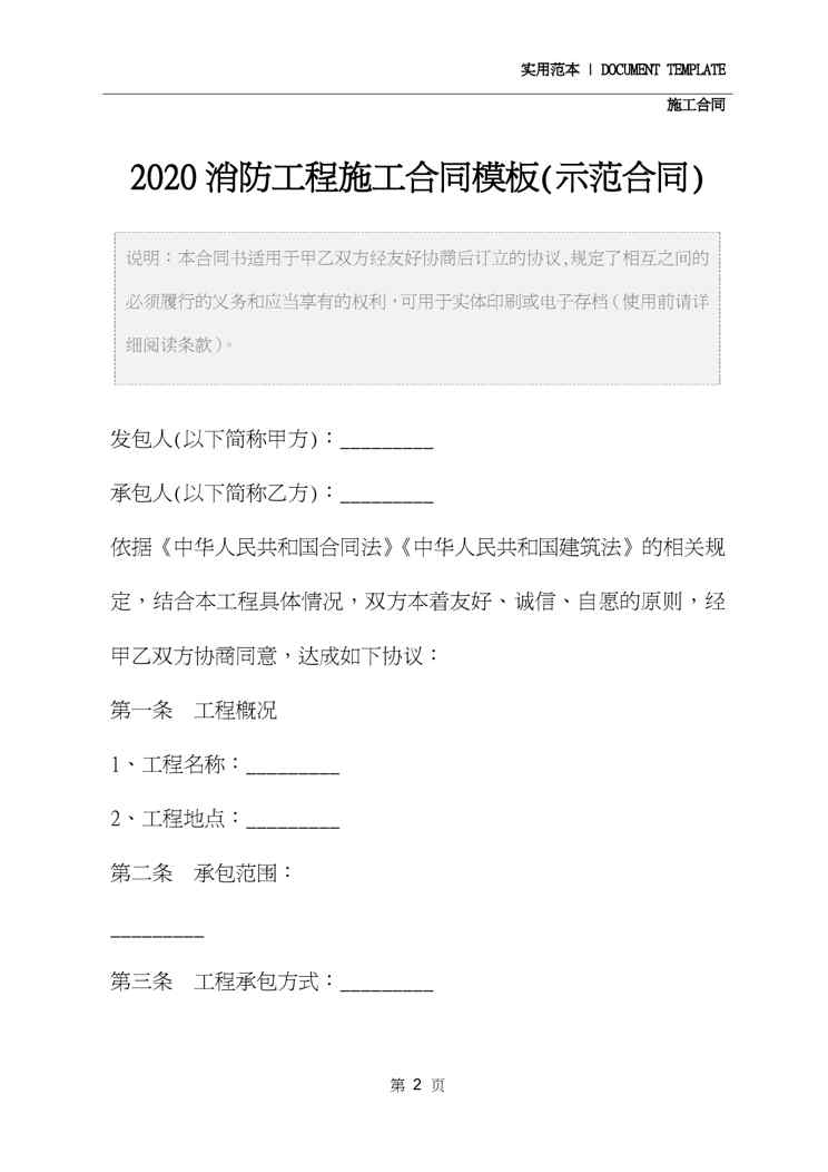 本站正式发布了《2020消防工程施工合同模板(示范合同)》文档,文档详细内容可下载阅读。 声明:本站所有文章,如无特殊说明或标注,均为本站原创发布。任何个人或组织,在未征得本站同意时,禁止复制、盗用、采集、发布本站内容到任何网站、书籍等各类媒体平台。如若本站内容侵犯了原著者的合法权益,可联系我们进行处理。