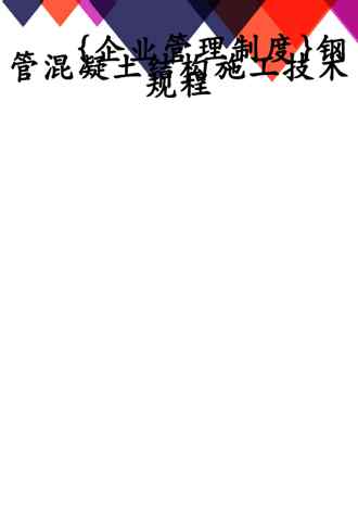 不久前,最新文档《{企业管理制度}钢管混凝土结构施工技术规程》全文正式在本站发布,感兴趣的用户可以下载阅读。 声明:本站所有文章,如无特殊说明或标注,均为本站原创发布。任何个人或组织,在未征得本站同意时,禁止复制、盗用、采集、发布本站内容到任何网站、书籍等各类媒体平台。如若本站内容侵犯了原著者的合法权益,可联系我们进行处理。