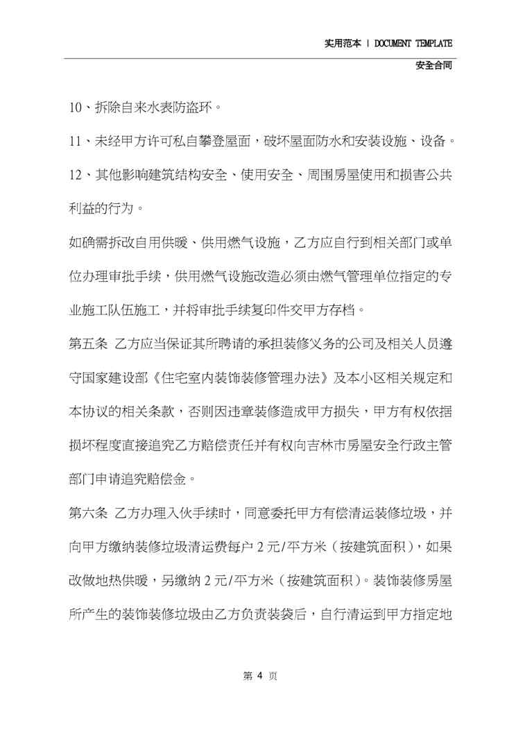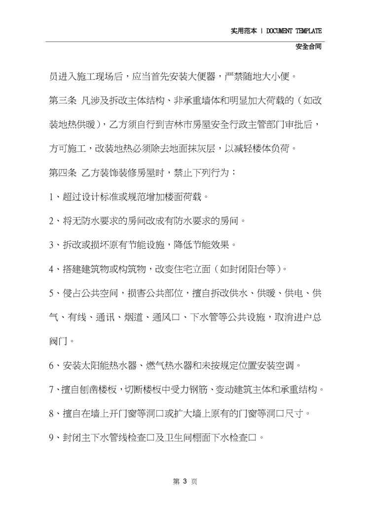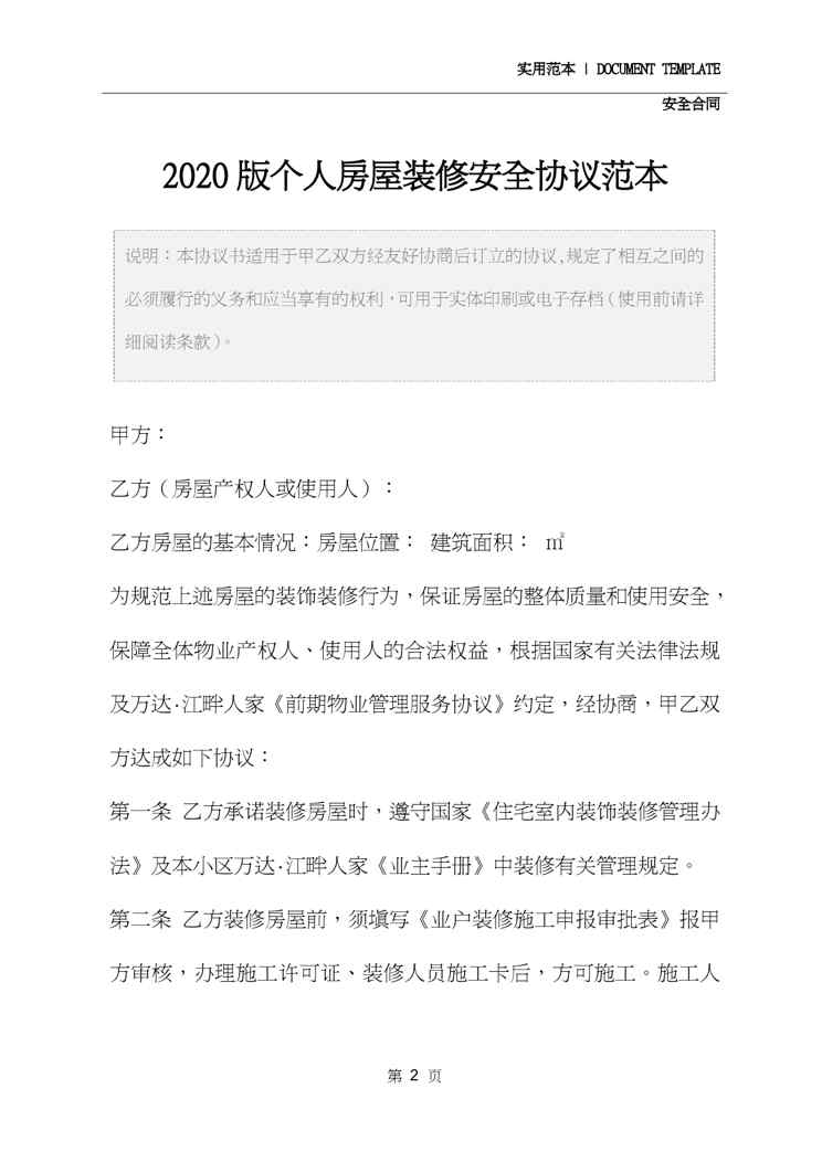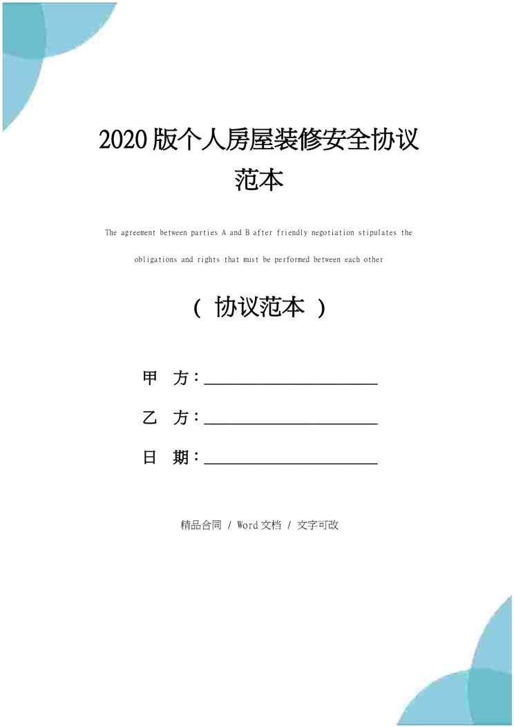 不久前,最新文档《2020版个人房屋装修安全协议范本》全文正式在本站发布,感兴趣的用户可以下载阅读。 声明:本站所有文章,如无特殊说明或标注,均为本站原创发布。任何个人或组织,在未征得本站同意时,禁止复制、盗用、采集、发布本站内容到任何网站、书籍等各类媒体平台。如若本站内容侵犯了原著者的合法权益,可联系我们进行处理。