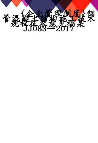 本站正式发布了《{企业管理制度}钢管混凝土结构施工技术规程征求意见稿某JJ083—2017》文档,文档详细内容可下载阅读。 声明:本站所有文章,如无特殊说明或标注,均为本站原创发布。任何个人或组织,在未征得本站同意时,禁止复制、盗用、采集、发布本站内容到任何网站、书籍等各类媒体平台。如若本站内容侵犯了原著者的合法权益,可联系我们进行处理。
