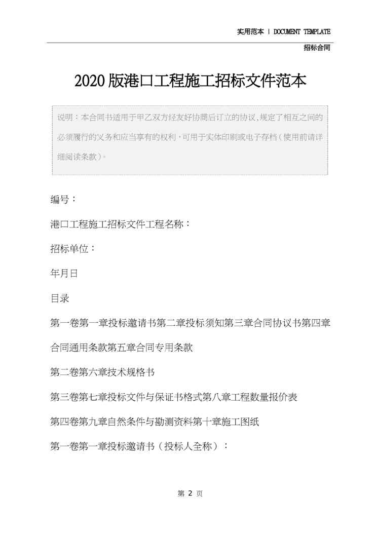 本站资深用户发布了最新的《2020版港口工程施工招标文件范本》文档,以下内容为预览,详细内容可下载阅读。 声明:本站所有文章,如无特殊说明或标注,均为本站原创发布。任何个人或组织,在未征得本站同意时,禁止复制、盗用、采集、发布本站内容到任何网站、书籍等各类媒体平台。如若本站内容侵犯了原著者的合法权益,可联系我们进行处理。