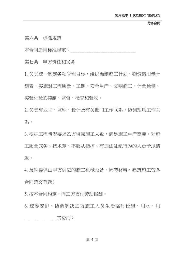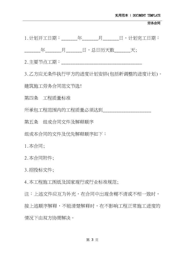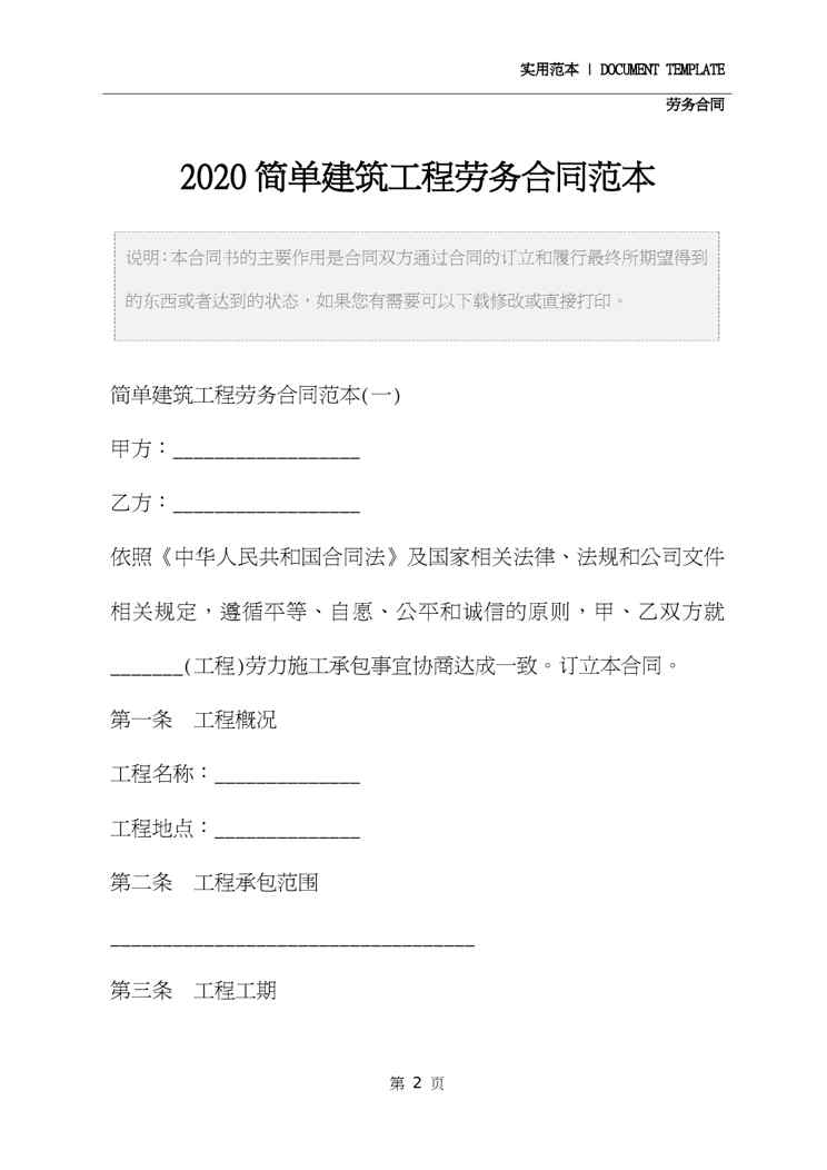 不久前,最新文档《2020简单建筑工程劳务合同范本》全文正式在本站发布,感兴趣的用户可以下载阅读。 声明:本站所有文章,如无特殊说明或标注,均为本站原创发布。任何个人或组织,在未征得本站同意时,禁止复制、盗用、采集、发布本站内容到任何网站、书籍等各类媒体平台。如若本站内容侵犯了原著者的合法权益,可联系我们进行处理。