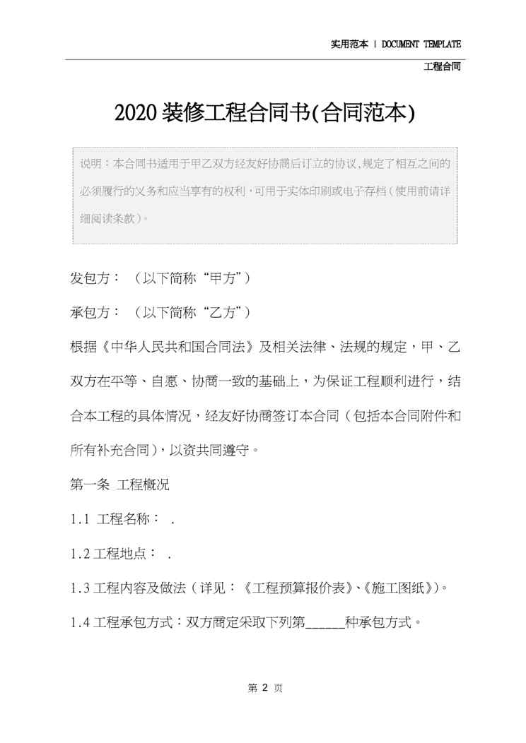 2020装修工程合同书(合同范本)2020装修工程合同书(合同范本)2020装修工程合同书(合同范本)2020装修工程合同书(合同范本)2020装修工程合同书(合同范本)