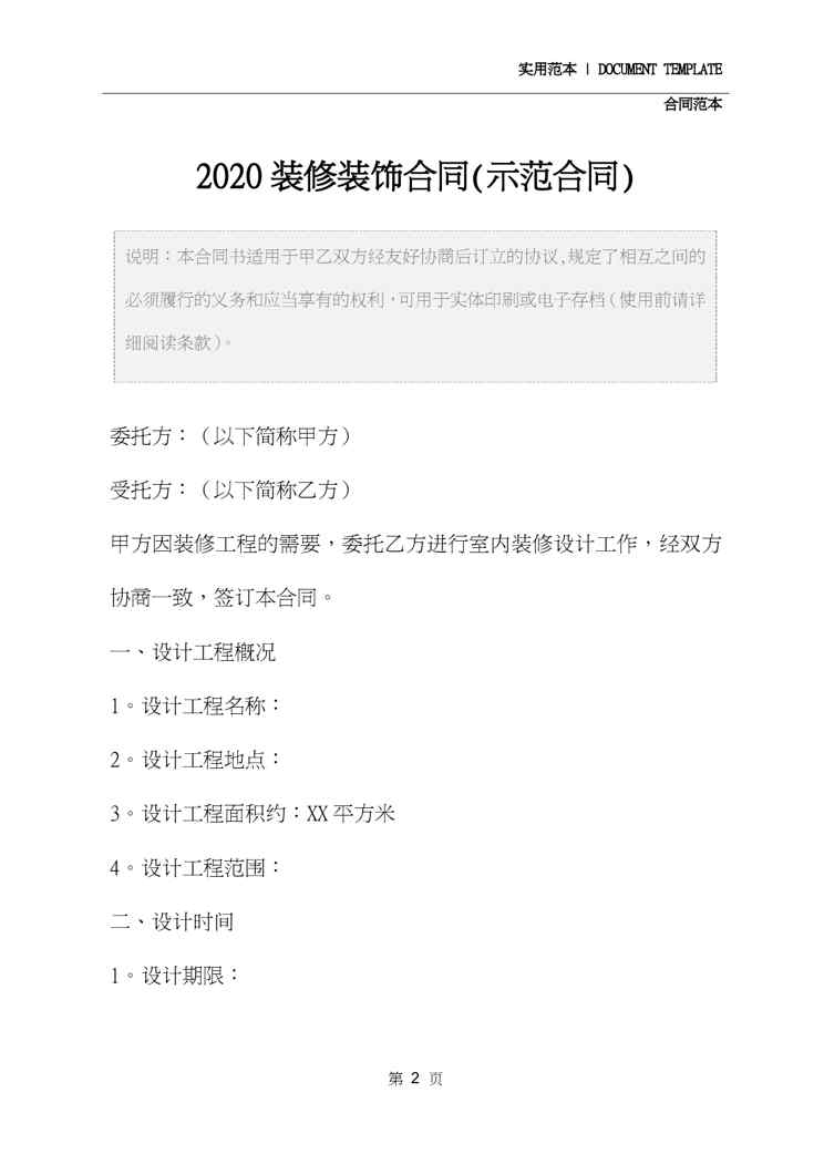 不久前,最新文档《2020装修装饰合同(示范合同)》全文正式在本站发布,感兴趣的用户可以下载阅读。 声明:本站所有文章,如无特殊说明或标注,均为本站原创发布。任何个人或组织,在未征得本站同意时,禁止复制、盗用、采集、发布本站内容到任何网站、书籍等各类媒体平台。如若本站内容侵犯了原著者的合法权益,可联系我们进行处理。