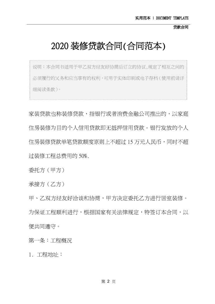 本站正式发布了《2020装修贷款合同(合同范本)》文档,文档详细内容可下载阅读。 声明:本站所有文章,如无特殊说明或标注,均为本站原创发布。任何个人或组织,在未征得本站同意时,禁止复制、盗用、采集、发布本站内容到任何网站、书籍等各类媒体平台。如若本站内容侵犯了原著者的合法权益,可联系我们进行处理。