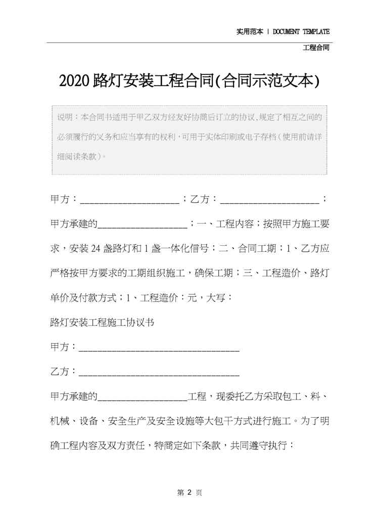 2020路灯安装工程合同(合同示范文本)2020路灯安装工程合同(合同示范文本)2020路灯安装工程合同(合同示范文本)2020路灯安装工程合同(合同示范文本)2020路灯安装工程合同(合同示范文本)