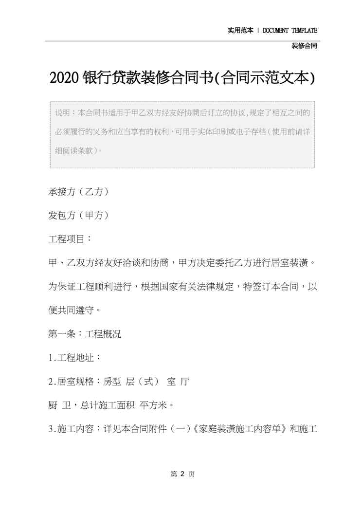 不久前,最新文档《2020银行贷款装修合同书(合同示范文本)》全文正式在本站发布,感兴趣的用户可以下载阅读。 声明:本站所有文章,如无特殊说明或标注,均为本站原创发布。任何个人或组织,在未征得本站同意时,禁止复制、盗用、采集、发布本站内容到任何网站、书籍等各类媒体平台。如若本站内容侵犯了原著者的合法权益,可联系我们进行处理。