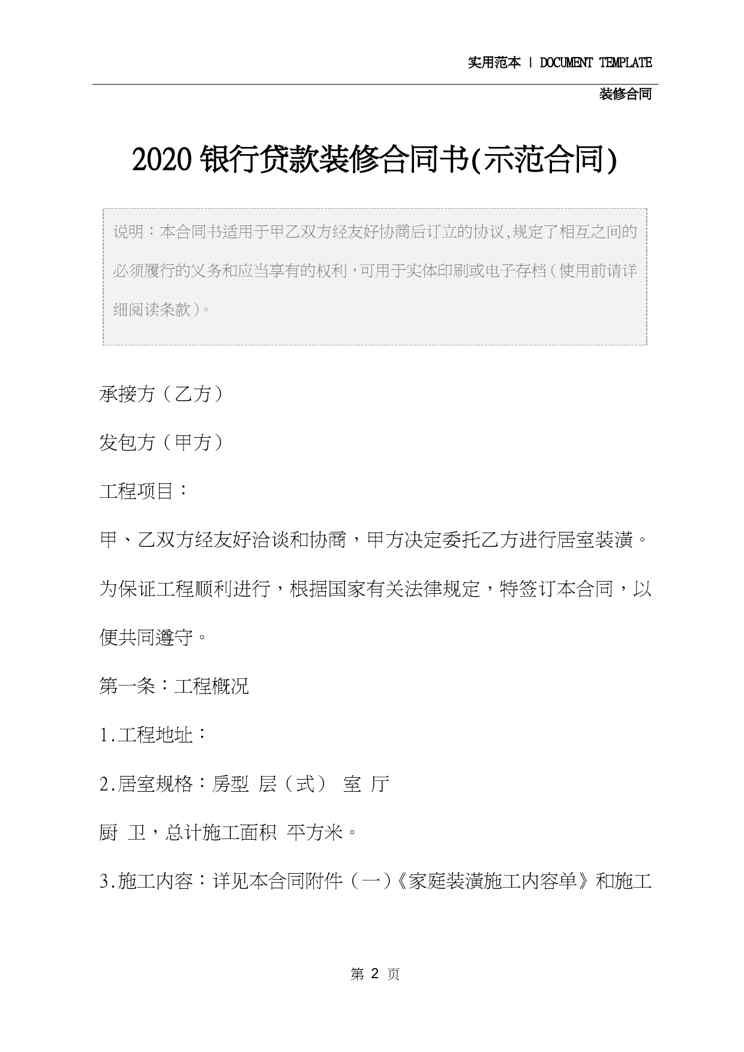 2020银行贷款装修合同书(示范合同)2020银行贷款装修合同书(示范合同)2020银行贷款装修合同书(示范合同)2020银行贷款装修合同书(示范合同)2020银行贷款装修合同书(示范合同)