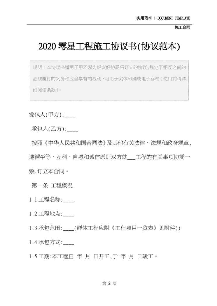 本站正式发布了《2020零星工程施工协议书(协议范本)》文档,文档详细内容可下载阅读。 声明:本站所有文章,如无特殊说明或标注,均为本站原创发布。任何个人或组织,在未征得本站同意时,禁止复制、盗用、采集、发布本站内容到任何网站、书籍等各类媒体平台。如若本站内容侵犯了原著者的合法权益,可联系我们进行处理。