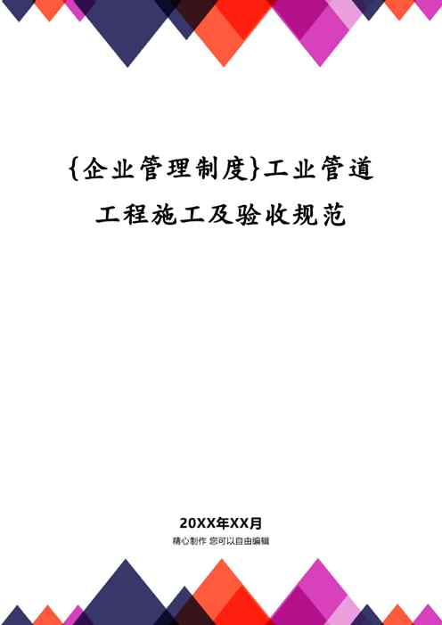 不久前,最新文档《{企业管理制度}工业管道工程施工及验收规范》全文正式在本站发布,感兴趣的用户可以下载阅读。 声明:本站所有文章,如无特殊说明或标注,均为本站原创发布。任何个人或组织,在未征得本站同意时,禁止复制、盗用、采集、发布本站内容到任何网站、书籍等各类媒体平台。如若本站内容侵犯了原著者的合法权益,可联系我们进行处理。