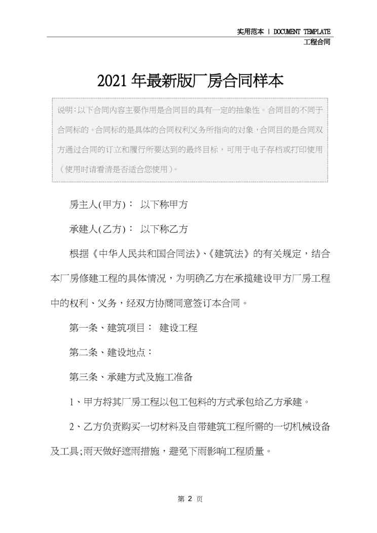 本站正式发布了《2021年最新版厂房合同样本》文档,文档详细内容可下载阅读。 声明:本站所有文章,如无特殊说明或标注,均为本站原创发布。任何个人或组织,在未征得本站同意时,禁止复制、盗用、采集、发布本站内容到任何网站、书籍等各类媒体平台。如若本站内容侵犯了原著者的合法权益,可联系我们进行处理。