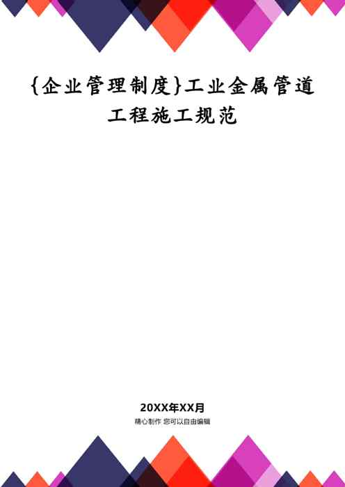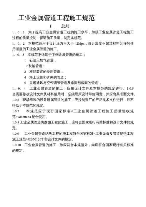 本站正式发布了《{企业管理制度}工业金属管道工程施工规范》文档,文档详细内容可下载阅读。 声明:本站所有文章,如无特殊说明或标注,均为本站原创发布。任何个人或组织,在未征得本站同意时,禁止复制、盗用、采集、发布本站内容到任何网站、书籍等各类媒体平台。如若本站内容侵犯了原著者的合法权益,可联系我们进行处理。
