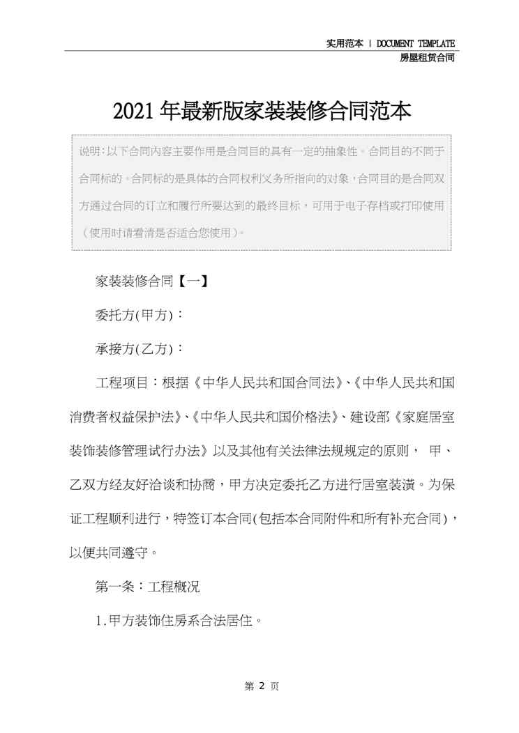 本站正式发布了《2021年最新版家装装修合同范本》文档,文档详细内容可下载阅读。 声明:本站所有文章,如无特殊说明或标注,均为本站原创发布。任何个人或组织,在未征得本站同意时,禁止复制、盗用、采集、发布本站内容到任何网站、书籍等各类媒体平台。如若本站内容侵犯了原著者的合法权益,可联系我们进行处理。