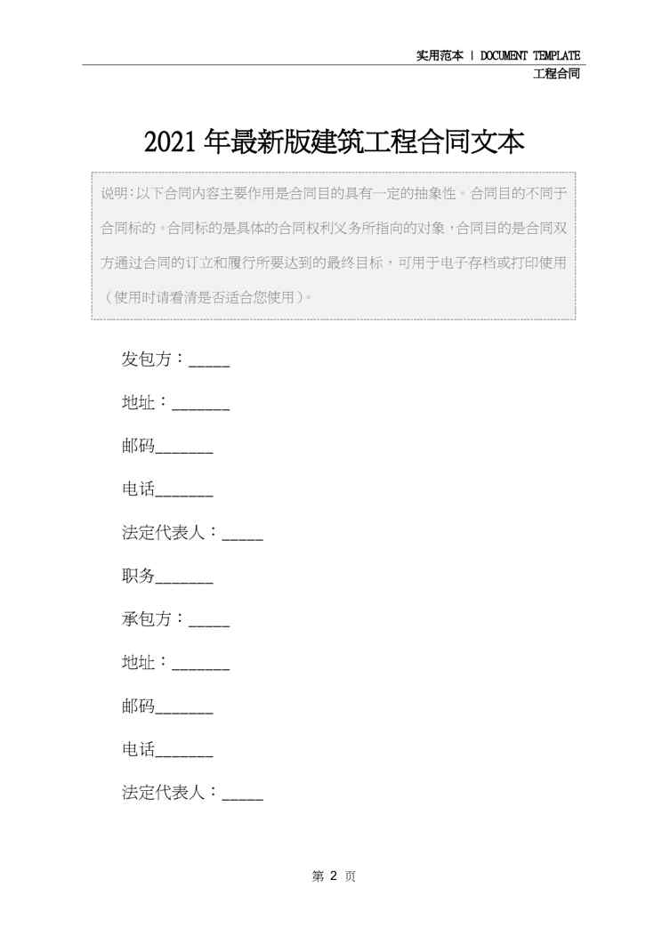 本站正式发布了《2021年最新版建筑工程合同文本》文档,文档详细内容可下载阅读。 声明:本站所有文章,如无特殊说明或标注,均为本站原创发布。任何个人或组织,在未征得本站同意时,禁止复制、盗用、采集、发布本站内容到任何网站、书籍等各类媒体平台。如若本站内容侵犯了原著者的合法权益,可联系我们进行处理。