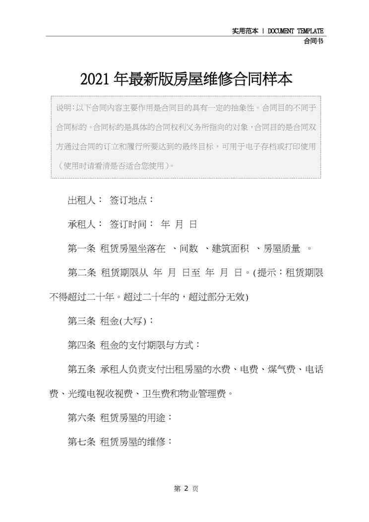 2021年最新版房屋维修合同样本2021年最新版房屋维修合同样本2021年最新版房屋维修合同样本2021年最新版房屋维修合同样本