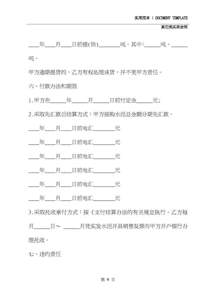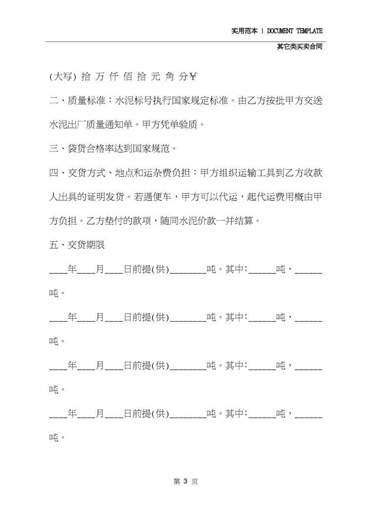 本站资深用户发布了最新的《2021年水泥买卖合同示范文本》文档,以下内容为预览,详细内容可下载阅读。 声明:本站所有文章,如无特殊说明或标注,均为本站原创发布。任何个人或组织,在未征得本站同意时,禁止复制、盗用、采集、发布本站内容到任何网站、书籍等各类媒体平台。如若本站内容侵犯了原著者的合法权益,可联系我们进行处理。