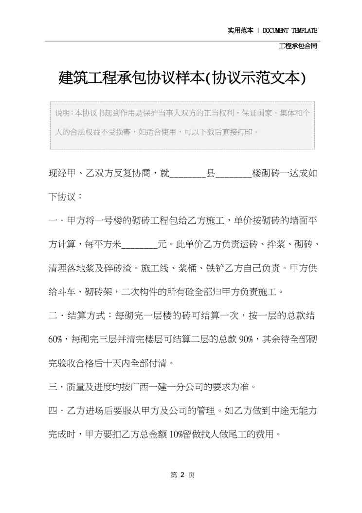 本站正式发布了《2021建筑工程承包协议样本》文档,文档详细内容可下载阅读。 声明:本站所有文章,如无特殊说明或标注,均为本站原创发布。任何个人或组织,在未征得本站同意时,禁止复制、盗用、采集、发布本站内容到任何网站、书籍等各类媒体平台。如若本站内容侵犯了原著者的合法权益,可联系我们进行处理。
