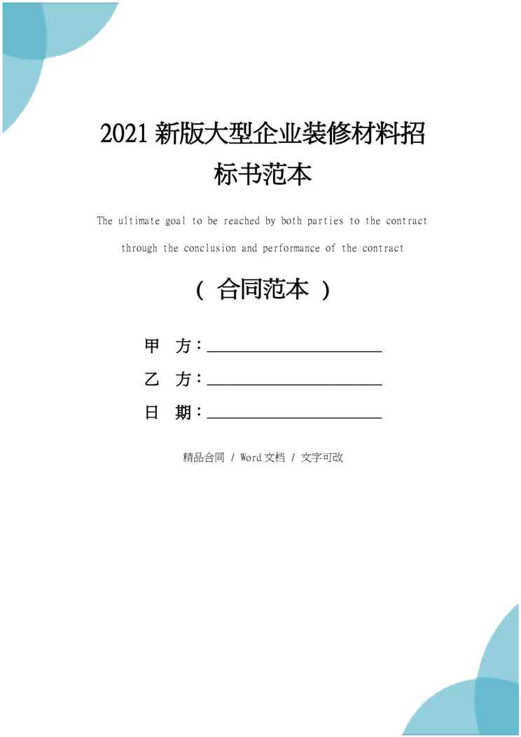 本站资深用户发布了最新的《2021新版大型企业装修材料招标书范本》文档,以下内容为预览,详细内容可下载阅读。 声明:本站所有文章,如无特殊说明或标注,均为本站原创发布。任何个人或组织,在未征得本站同意时,禁止复制、盗用、采集、发布本站内容到任何网站、书籍等各类媒体平台。如若本站内容侵犯了原著者的合法权益,可联系我们进行处理。