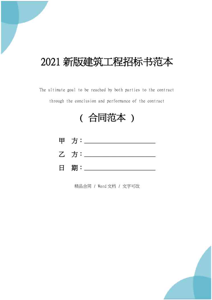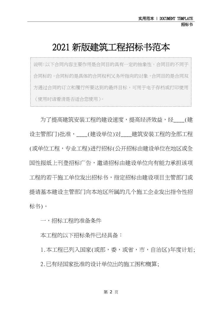 本站正式发布了《2021新版建筑工程招标书范本》文档,文档详细内容可下载阅读。 声明:本站所有文章,如无特殊说明或标注,均为本站原创发布。任何个人或组织,在未征得本站同意时,禁止复制、盗用、采集、发布本站内容到任何网站、书籍等各类媒体平台。如若本站内容侵犯了原著者的合法权益,可联系我们进行处理。