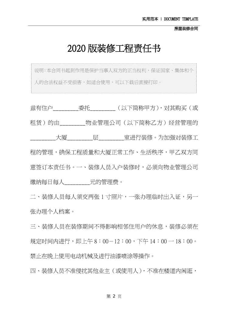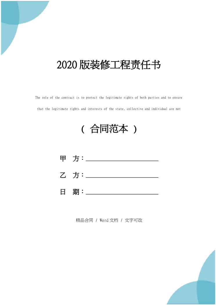 本站资深用户发布了最新的《2021新版装修工程责任书》文档,以下内容为预览,详细内容可下载阅读。