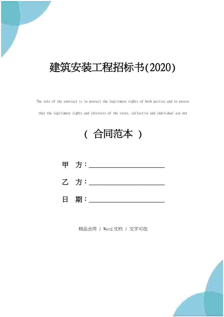 本站资深用户发布了最新的《2021版建筑安装工程招标书》文档,以下内容为预览,详细内容可下载阅读。 声明:本站所有文章,如无特殊说明或标注,均为本站原创发布。任何个人或组织,在未征得本站同意时,禁止复制、盗用、采集、发布本站内容到任何网站、书籍等各类媒体平台。如若本站内容侵犯了原著者的合法权益,可联系我们进行处理。