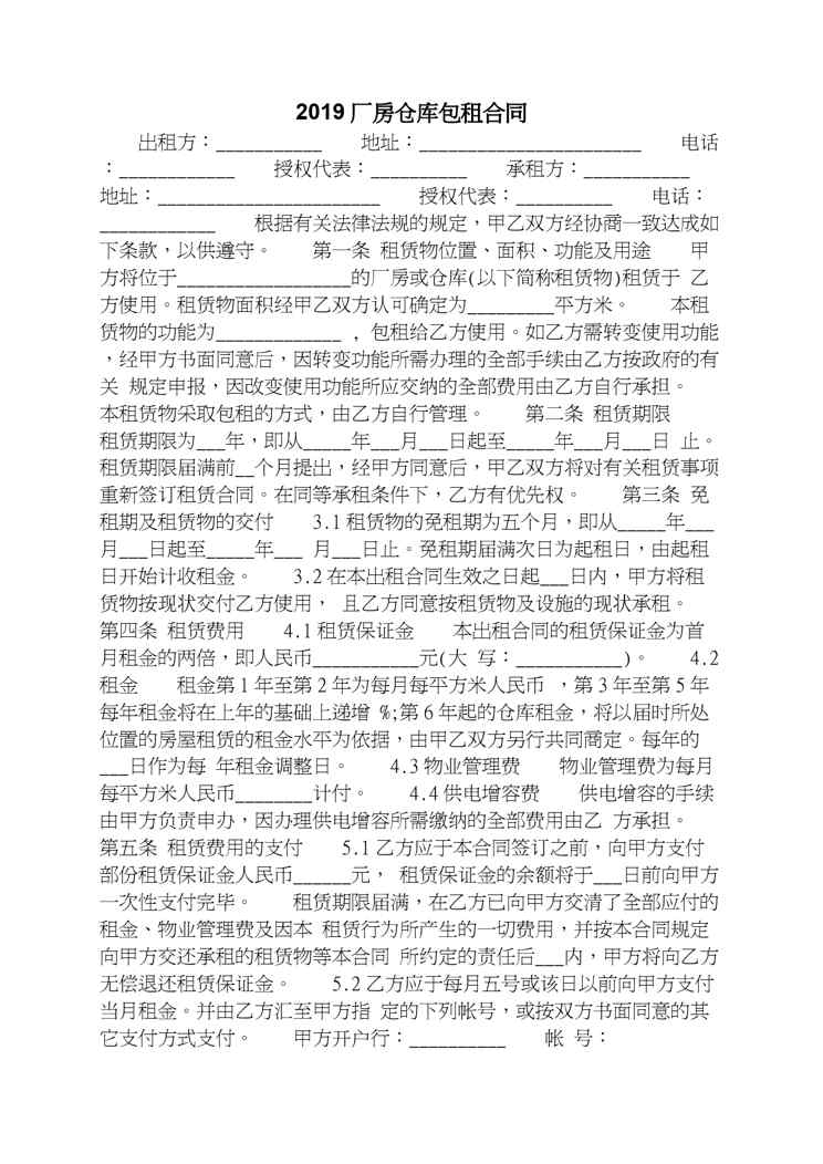 本站资深用户发布了最新的《20__厂房仓库包租合同》文档,以下内容为预览,详细内容可下载阅读。 声明:本站所有文章,如无特殊说明或标注,均为本站原创发布。任何个人或组织,在未征得本站同意时,禁止复制、盗用、采集、发布本站内容到任何网站、书籍等各类媒体平台。如若本站内容侵犯了原著者的合法权益,可联系我们进行处理。