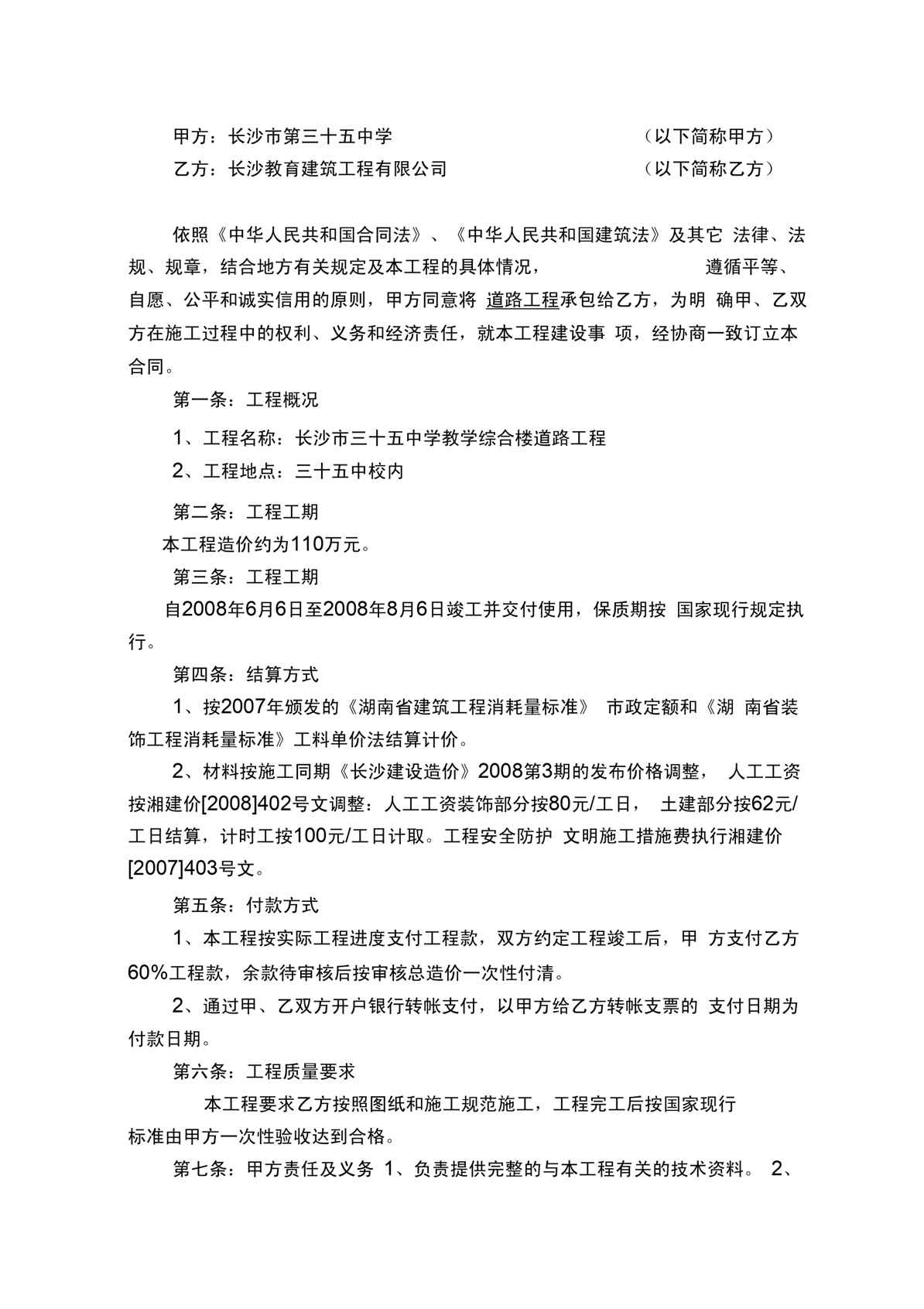 本站资深用户发布了最新的《35中道路工程施工承包协议书》文档,以下内容为预览,详细内容可下载阅读。 声明:本站所有文章,如无特殊说明或标注,均为本站原创发布。任何个人或组织,在未征得本站同意时,禁止复制、盗用、采集、发布本站内容到任何网站、书籍等各类媒体平台。如若本站内容侵犯了原著者的合法权益,可联系我们进行处理。