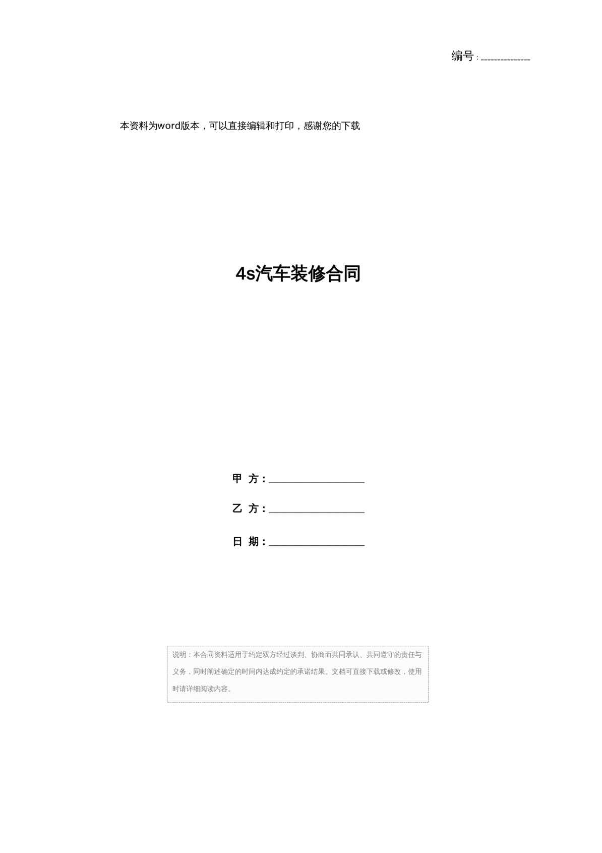 本站正式发布了《4s汽车装修合同》文档,文档详细内容可下载阅读。 声明:本站所有文章,如无特殊说明或标注,均为本站原创发布。任何个人或组织,在未征得本站同意时,禁止复制、盗用、采集、发布本站内容到任何网站、书籍等各类媒体平台。如若本站内容侵犯了原著者的合法权益,可联系我们进行处理。