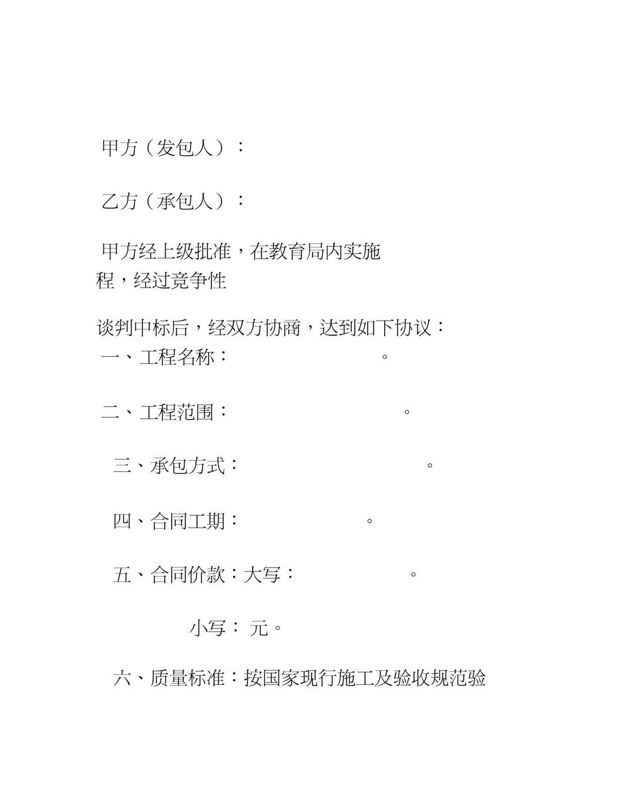 不久前,最新文档《5万元以下建筑工程施工合同(教育局机关)》全文正式在本站发布,感兴趣的用户可以下载阅读。 声明:本站所有文章,如无特殊说明或标注,均为本站原创发布。任何个人或组织,在未征得本站同意时,禁止复制、盗用、采集、发布本站内容到任何网站、书籍等各类媒体平台。如若本站内容侵犯了原著者的合法权益,可联系我们进行处理。