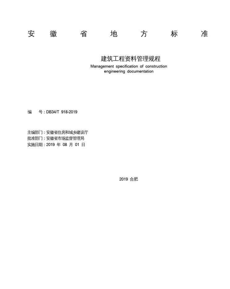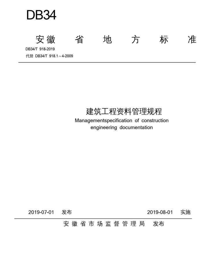 本站正式发布了《DB34_T918-2019建筑工程资料管理规程》文档,文档详细内容可下载阅读。 声明:本站所有文章,如无特殊说明或标注,均为本站原创发布。任何个人或组织,在未征得本站同意时,禁止复制、盗用、采集、发布本站内容到任何网站、书籍等各类媒体平台。如若本站内容侵犯了原著者的合法权益,可联系我们进行处理。