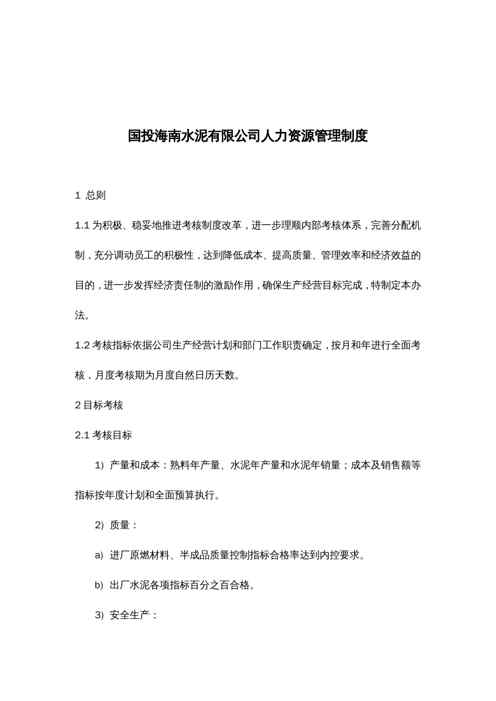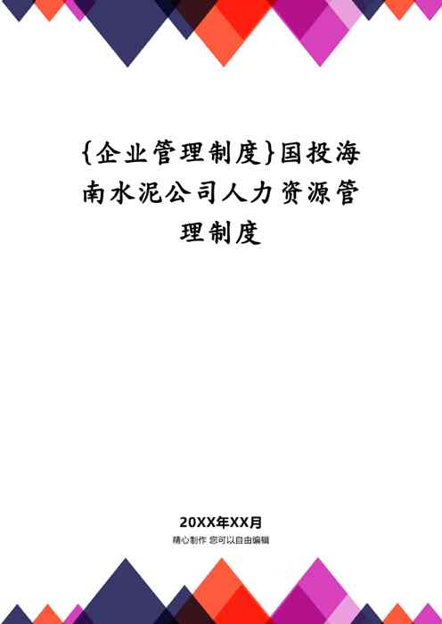 本站资深用户发布了最新的《{企业管理制度}国投海南水泥公司人力资源管理制度》文档,以下内容为预览,详细内容可下载阅读。 声明:本站所有文章,如无特殊说明或标注,均为本站原创发布。任何个人或组织,在未征得本站同意时,禁止复制、盗用、采集、发布本站内容到任何网站、书籍等各类媒体平台。如若本站内容侵犯了原著者的合法权益,可联系我们进行处理。