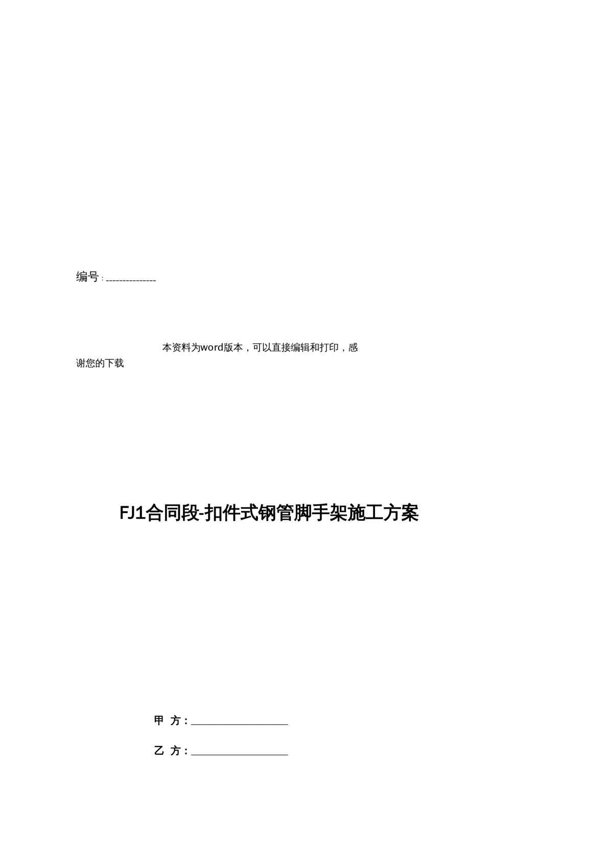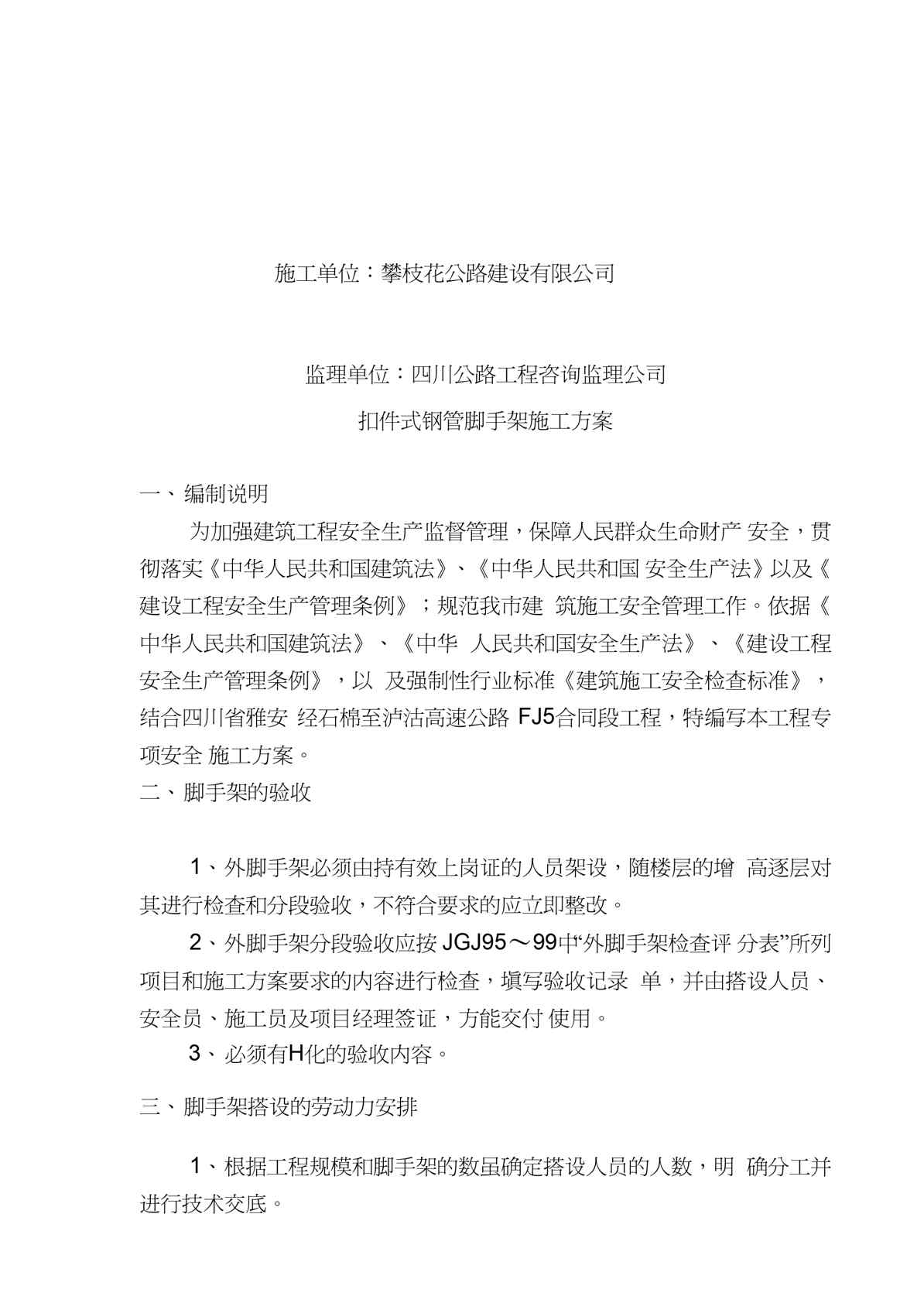 不久前,最新文档《FJ1合同段-扣件式钢管脚手架施工方案》全文正式在本站发布,感兴趣的用户可以下载阅读。 声明:本站所有文章,如无特殊说明或标注,均为本站原创发布。任何个人或组织,在未征得本站同意时,禁止复制、盗用、采集、发布本站内容到任何网站、书籍等各类媒体平台。如若本站内容侵犯了原著者的合法权益,可联系我们进行处理。