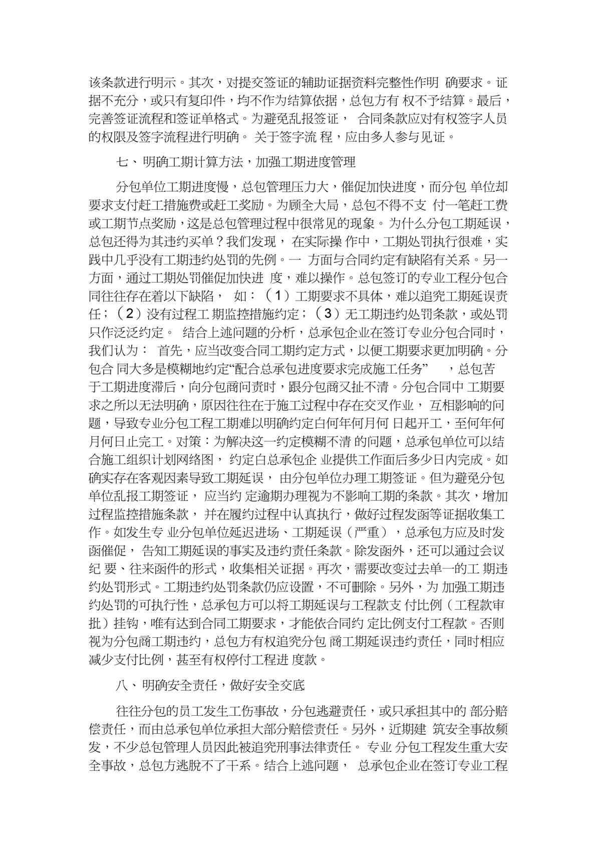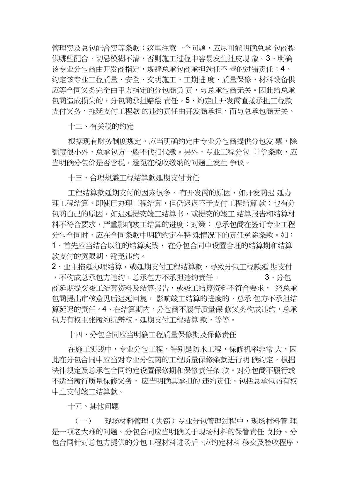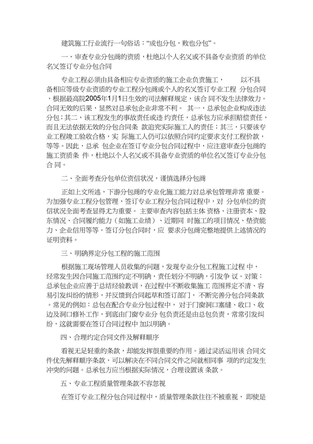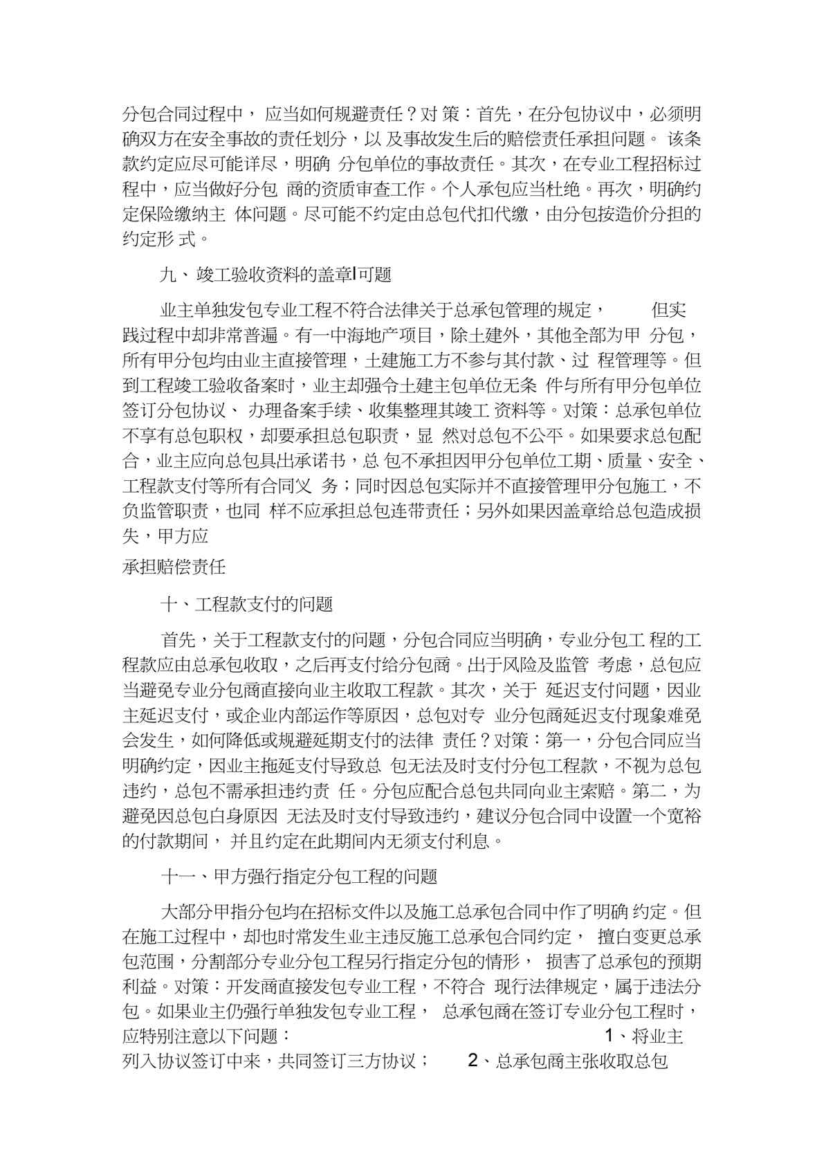 本站资深用户发布了最新的《H讲义16-签订施工总承包专业工程分包合同应当注意的问题》文档,以下内容为预览,详细内容可下载阅读。 声明:本站所有文章,如无特殊说明或标注,均为本站原创发布。任何个人或组织,在未征得本站同意时,禁止复制、盗用、采集、发布本站内容到任何网站、书籍等各类媒体平台。如若本站内容侵犯了原著者的合法权益,可联系我们进行处理。