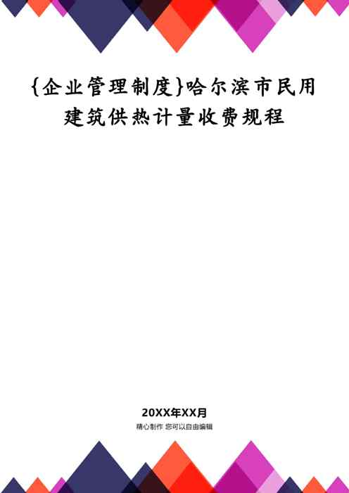 不久前,最新文档《{企业管理制度}哈尔滨市民用建筑供热计量收费规程》全文正式在本站发布,感兴趣的用户可以下载阅读。 声明:本站所有文章,如无特殊说明或标注,均为本站原创发布。任何个人或组织,在未征得本站同意时,禁止复制、盗用、采集、发布本站内容到任何网站、书籍等各类媒体平台。如若本站内容侵犯了原著者的合法权益,可联系我们进行处理。