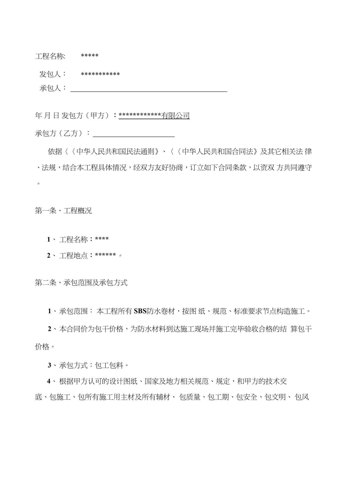 SBS防水工程施工合同SBS防水工程施工合同SBS防水工程施工合同SBS防水工程施工合同SBS防水工程施工合同