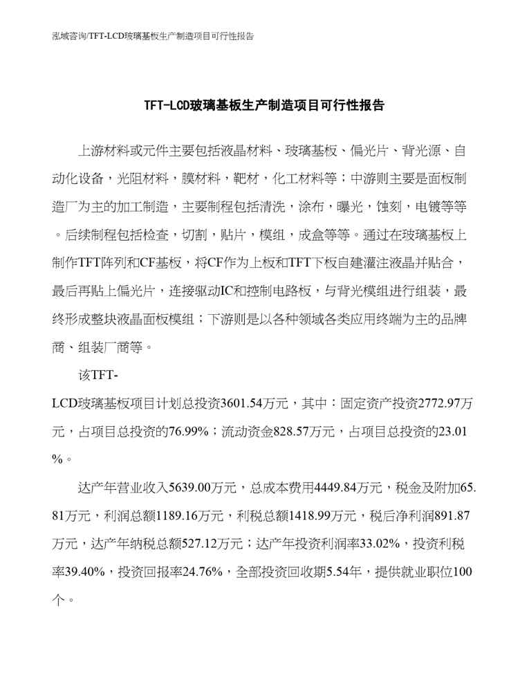 本站正式发布了《TFT-LCD玻璃基板生产制造项目可行性报告》文档,文档详细内容可下载阅读。 声明:本站所有文章,如无特殊说明或标注,均为本站原创发布。任何个人或组织,在未征得本站同意时,禁止复制、盗用、采集、发布本站内容到任何网站、书籍等各类媒体平台。如若本站内容侵犯了原著者的合法权益,可联系我们进行处理。